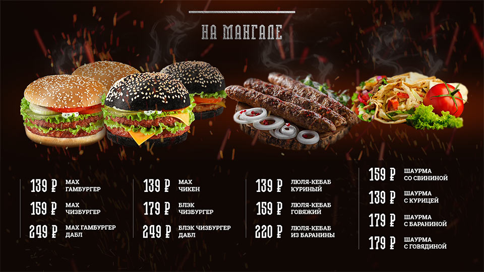 Бургеры на любой вкус, люля-кебаб, шаурма